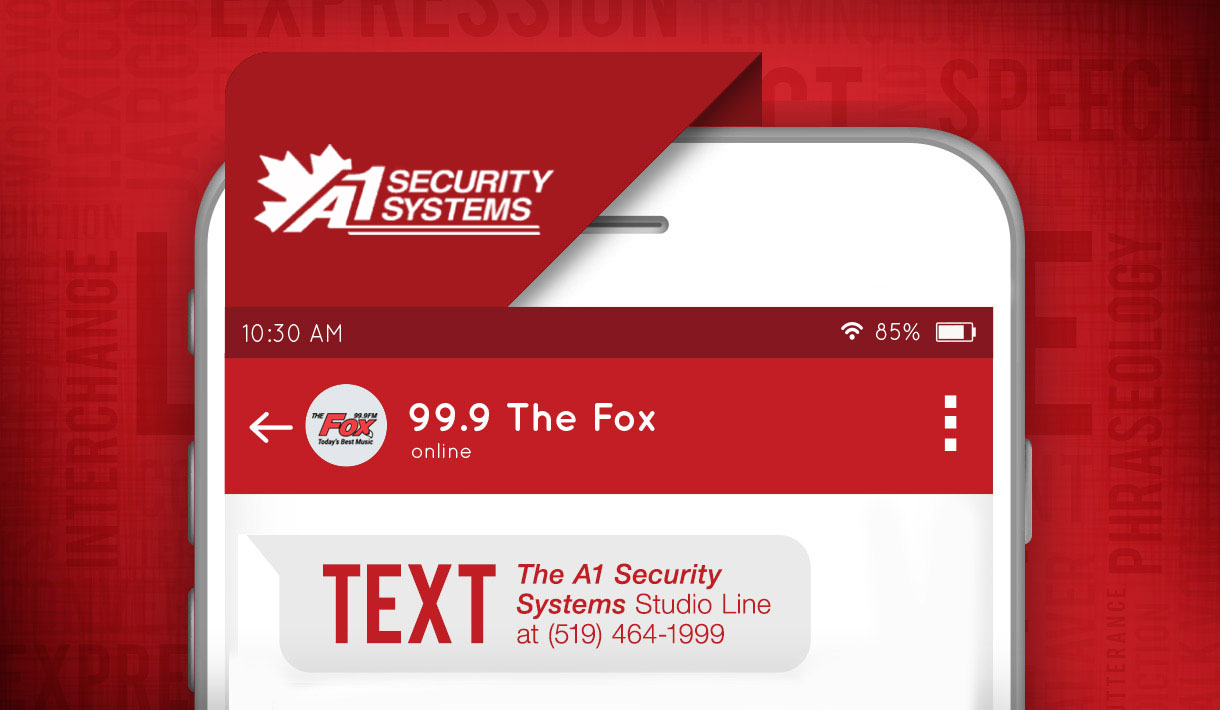 Stay connected! Text us anytime to the A1 Security Text Line at (519) 464-1999. Text us traffic or news tips. Ask a question, tell us something COOL and play along with Contests! We love to hear from YOU! ***Data Rates May Apply***